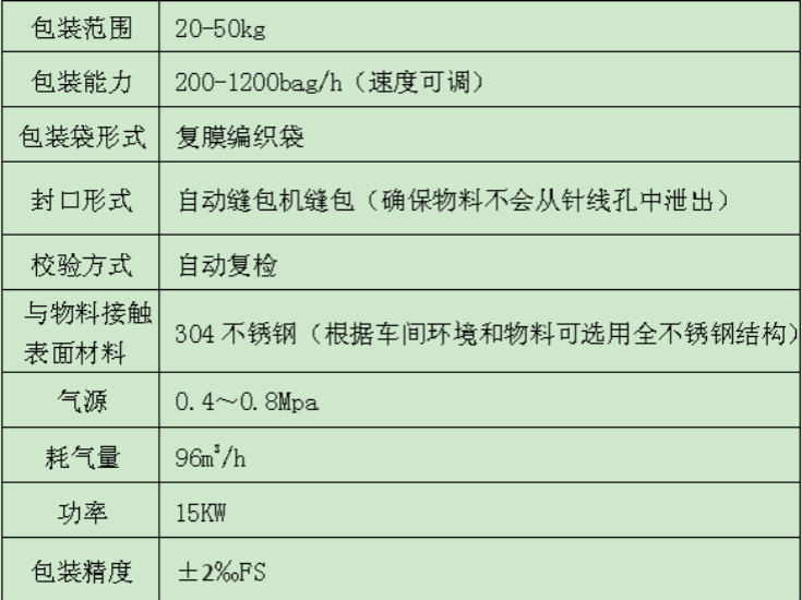 有機肥全自動包裝秤能滿足粉體物料或顆粒物料(稱重范圍10-50kg)產(chǎn)品的稱重、供袋、取袋、夾口、裝袋、折邊、縫袋、倒袋整形、重量檢測、超限剔除、自動壓平、調(diào)姿、編組、分層升降等作業(yè),并全部實現(xiàn)自動化??砂b:有機肥、復合(混)肥、摻混肥、樹脂包衣尿素、硫包衣尿素;稱量范圍:25、50㎏/bag;包裝速度:400-600bag/h(可根據(jù)物料特點及客戶要求);稱量精度:±2‰;正常進口溫度:常溫;安裝位置:室內(nèi);工作環(huán)境溫度:-20~+45℃;包裝袋:包裝袋結(jié)構(gòu)形式:塑料編織袋,單向開口,內(nèi)覆塑料膜包裝袋規(guī)格:50kg:800(長)*560(寬)*150(高),40kg:800(長)*500(寬)*130(高);包裝袋制造標準:符合GB/T15063---2001,重量120克及以上。