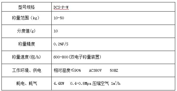 DCS-P-W型煤定量包裝機技術參數(shù):
